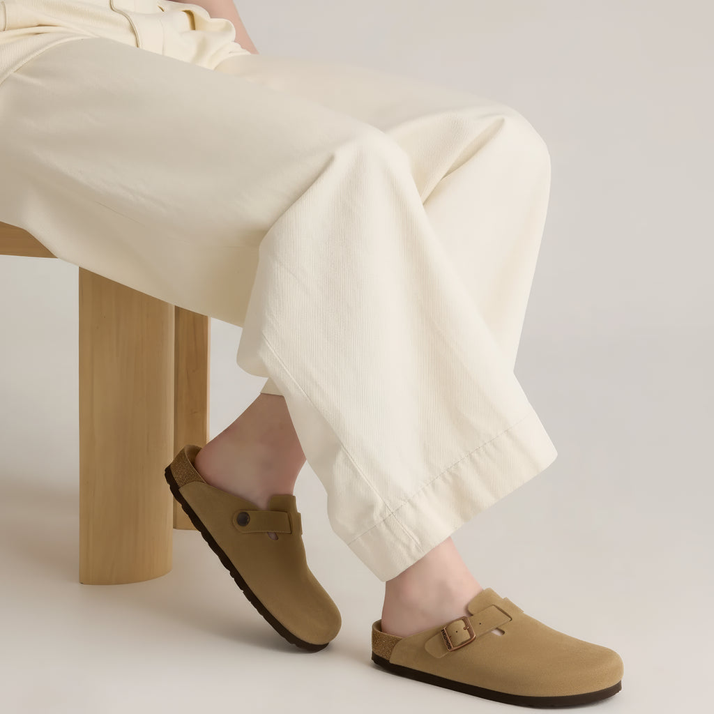 We used a high grade suede material that is flexible and won't have creases making the clogs safe to all-day activities with.